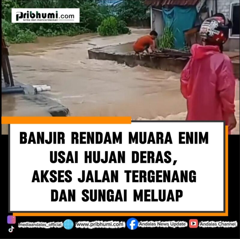 Palembang, Pribhumi.com — Hujan dengan intensitas tinggi yang mengguyur wilayah Muara Enim, Sumatera Selatan, sejak Selasa (14/4/2026) dini hari memicu terjadinya banjir di sejumlah lokasi. Luapan air sungai serta buruknya aliran drainase menyebabkan genangan merendam akses jalan dan kawasan permukiman.