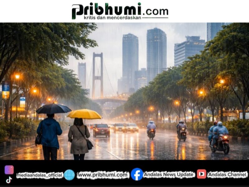 Jambi, Pribhumi.com – Badan Meteorologi, Klimatologi, dan Geofisika (BMKG) memprakirakan sebagian besar wilayah di Provinsi Jambi akan mengalami hujan pada Minggu, 15 Maret 2026. Intensitas hujan yang terjadi umumnya ringan, namun beberapa daerah diprediksi mengalami kondisi cuaca berbeda.