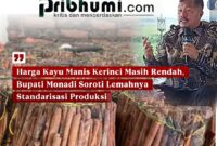 Kerinci, Pribhumi.com — Bupati Kerinci, Monadi, mengungkapkan bahwa rendahnya harga komoditas kayu manis di Kabupaten Kerinci saat ini bukan semata-mata disebabkan oleh faktor pasar,…