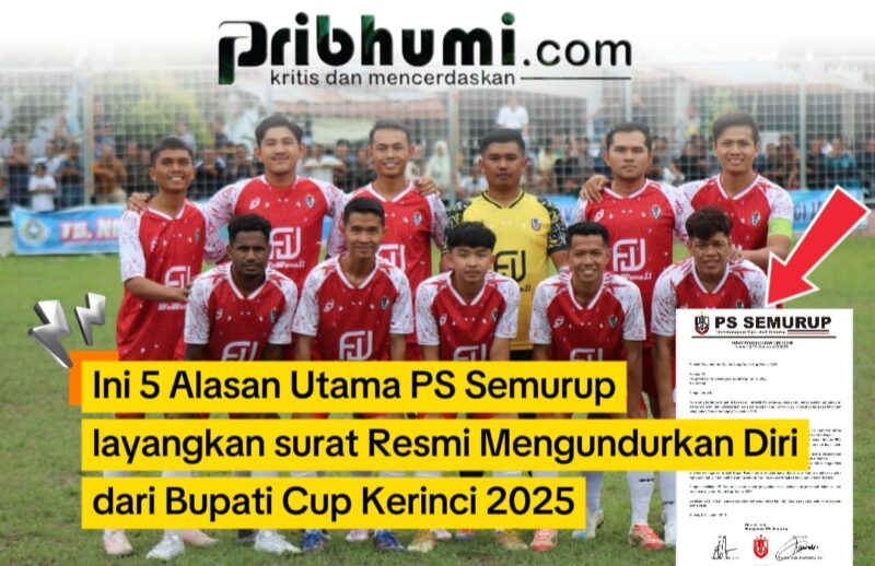 KERINCI, Pribhumi.com  — PS Semurup mengambil langkah tegas dengan menyatakan pengunduran diri secara resmi dari seluruh rangkaian kegiatan Bupati Cup Kerinci 2025, terutama terkait pertandingan babak 8 besar yang dijadwalkan pada 4 Desember 2025.