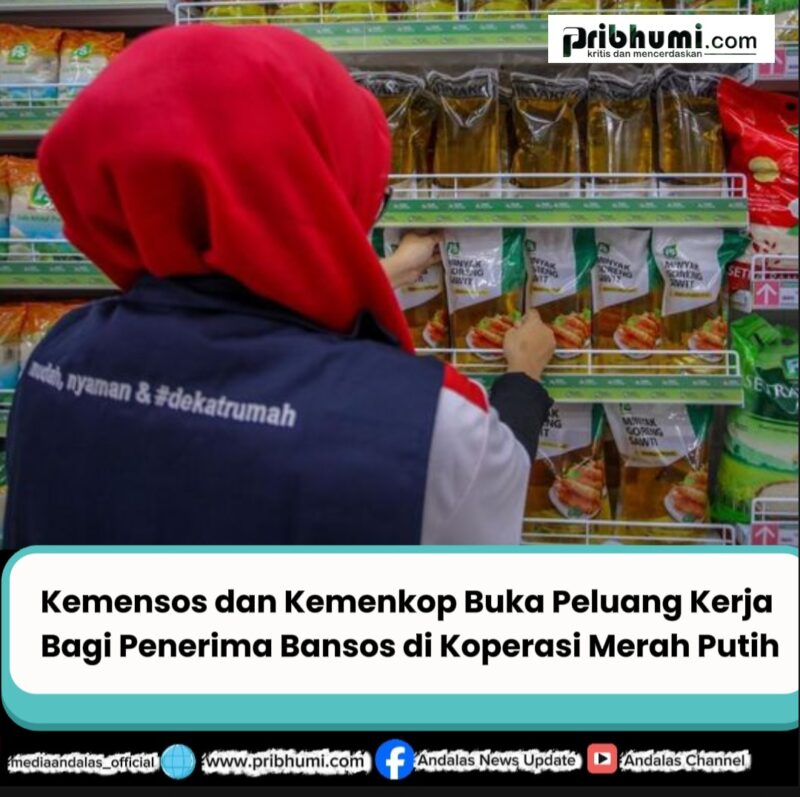 Jakarta, Pribhumi.com – Pemerintah melalui Kementerian Sosial (Kemensos) dan Kementerian Koperasi (Kemenkop) menyiapkan program pemberdayaan bagi penerima bantuan sosial (bansos) dengan membuka peluang kerja di Koperasi Desa/Kelurahan Merah Putih.
