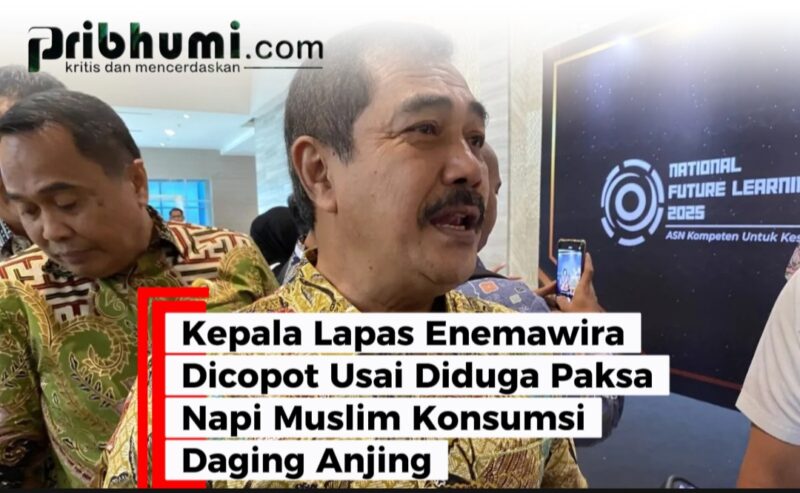 Jakarta, Pribhumi.com — Kementerian Imigrasi dan Pemasyarakatan mengambil langkah cepat terkait dugaan pelanggaran serius yang dilakukan Kepala Lembaga Pemasyarakatan Enemawira, Sulawesi Utara, berinisial CS. Menteri Imigrasi dan Pemasyarakatan, Agus Andrianto, menegaskan bahwa CS telah dicopot dari jabatannya setelah menerima laporan bahwa ia diduga memaksa narapidana Muslim mengonsumsi daging anjing dalam sebuah kegiatan internal.