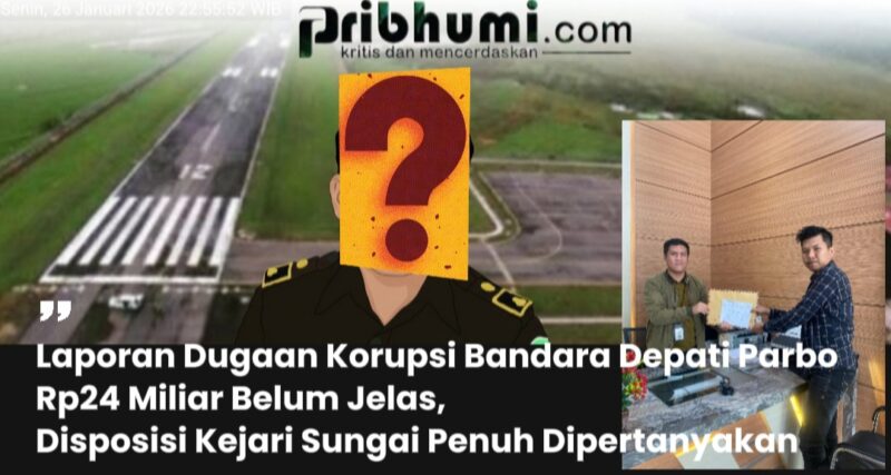 SUNGAI PENUH, Pribhumi.com — Penanganan laporan dugaan penyimpangan anggaran Proyek Pengembangan Bandara Depati Parbo Tahun Anggaran 2024 senilai sekitar Rp24 miliar di Kejaksaan Negeri (Kejari) Sungai Penuh hingga kini belum menemui titik terang. Ketidakselarasan informasi antara pelapor dan pihak kejaksaan memunculkan sorotan publik terhadap transparansi mekanisme disposisi laporan di internal lembaga penegak hukum tersebut.