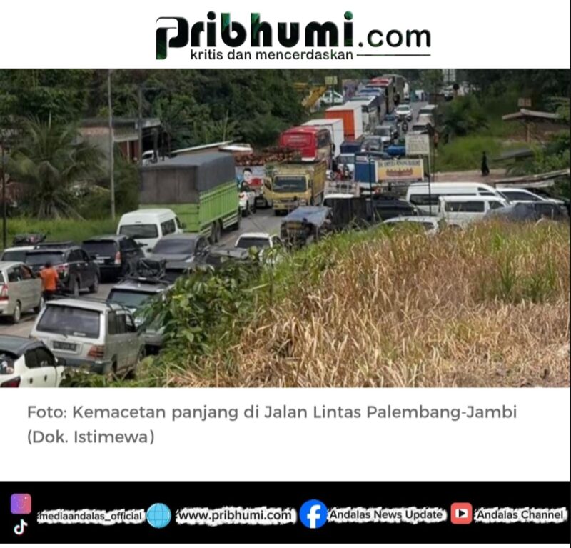 Jambi, Pribhumi.com – Kemacetan panjang terjadi di ruas Jalan Lintas Timur Sumatera yang menghubungkan Jambi dengan Palembang. Kepadatan kendaraan dilaporkan terjadi di wilayah Bayung Lencir, Kabupaten Musi Banyuasin, Sumatera Selatan, dengan antrean kendaraan mencapai puluhan kilometer.