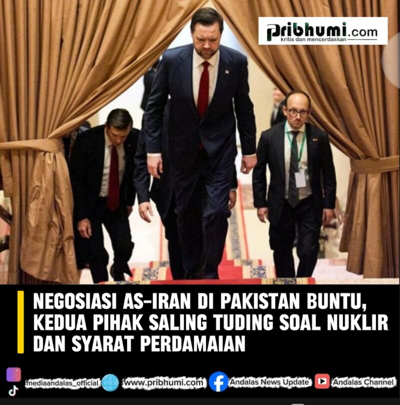 JAMBI, Pribhumi.com — Upaya perundingan antara Amerika Serikat dan Iran yang digelar di Pakistan berakhir tanpa kesepakatan. Kedua negara justru saling menyalahkan atas kegagalan pembicaraan yang diharapkan mampu mengakhiri konflik berkepanjangan.