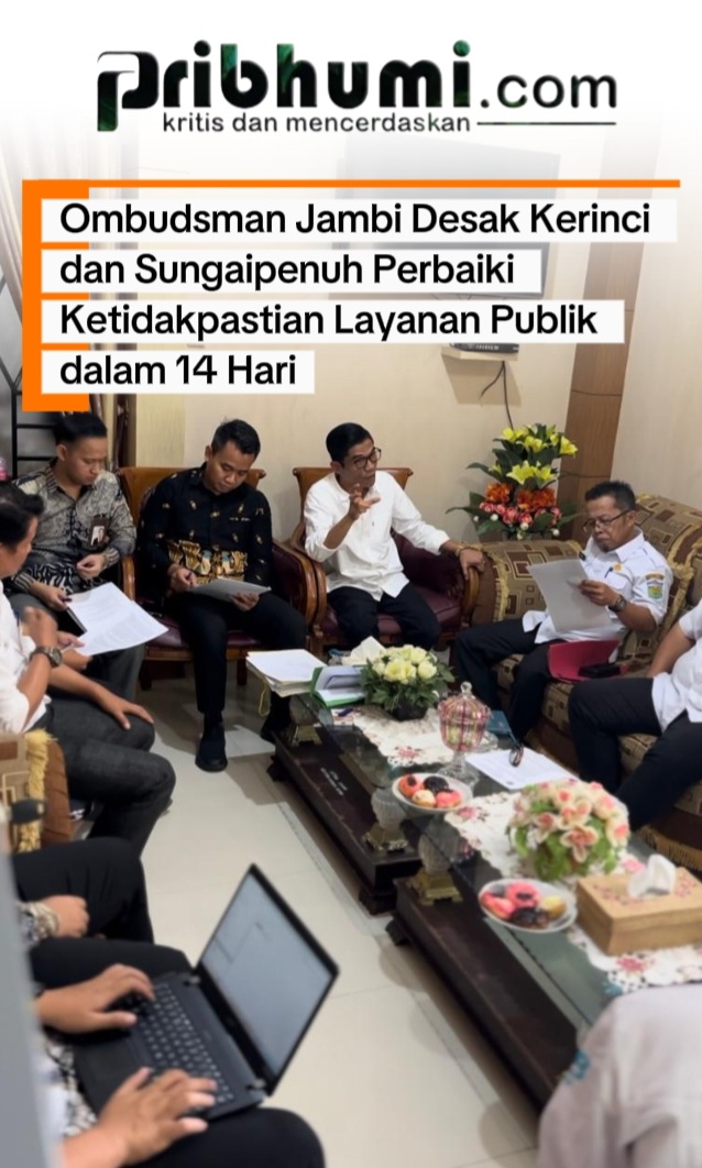 JAMBI, Pribhumi.com – Ombudsman Provinsi Jambi menyoroti masih lemahnya kepastian pelayanan publik di Kabupaten Kerinci yang dipimpin Monadi–Morizon serta Pemerintah Kota Sungaipenuh di bawah kepemimpinan Alfin–Azhar. Kepala Ombudsman Jambi, Saiful Roswandi, menegaskan bahwa pelayanan yang menjadi hak masyarakat tidak boleh terbengkalai. Hal ini ia sampaikan usai melakukan pemeriksaan lanjutan terhadap sejumlah laporan masyarakat pada Kamis, 4 Desember 2025.