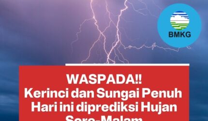 Waspada!! Kerinci dan Sungai Penuh Hari ini diprediksi Hujan Sore-Malam