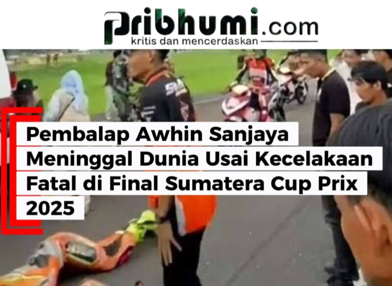 Tanjabtim, Pribhumi.com — Dunia balap motor nasional kembali berduka. Seorang pembalap asal Sulawesi Selatan, Awhin Sanjaya (27), meninggal dunia setelah mengalami kecelakaan hebat saat berlaga di Grand Final Sumatera Cup Prix 2025 yang digelar di Zabaq National Circuit, Kabupaten Tanjung Jabung Timur, Jambi, Minggu sore.