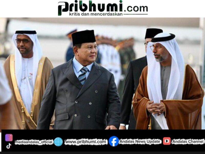 Abu Dhabi, Pribhumi.com – Presiden Republik Indonesia, Prabowo Subianto, tiba di Abu Dhabi dalam rangka melanjutkan kunjungan kerjanya ke kawasan Timur Tengah. Dalam agenda tersebut, Prabowo dijadwalkan melakukan pertemuan bilateral dengan Presiden Persatuan Emirat Arab (PEA), Sheikh Mohammed bin Zayed Al Nahyan.