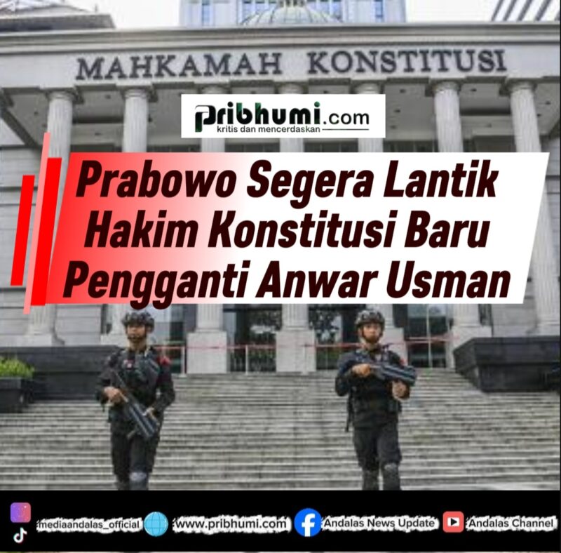 JAKARTA, Pribhumi.com – Presiden Prabowo Subianto dijadwalkan memimpin langsung pengucapan sumpah jabatan hakim konstitusi baru dari unsur Mahkamah Agung dalam waktu dekat. Pelantikan ini dilakukan untuk mengisi posisi yang ditinggalkan Anwar Usman yang telah memasuki masa pensiun pada 6 April 2026.
