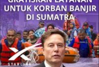 Elon Musk Gratiskan Layanan Starlink untuk Korban Banjir Sumatera hingga Akhir 2025