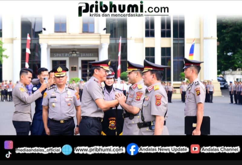 JAMBI, Pribhumi.com – Kepolisian Daerah (Polda) Jambi menggelar Upacara Serah Terima Jabatan (Sertijab) Wakil Kepala Kepolisian Daerah (Wakapolda) Jambi, Kamis (5/2/2026) pagi. Kegiatan berlangsung di Lapangan Hitam Mapolda Jambi dan dipimpin langsung Kapolda Jambi, Irjen Pol. Krisno H. Siregar.
