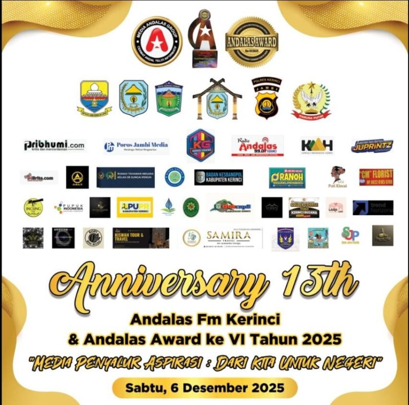 Sementara itu General Manager Media Andalas Group, Hesty indriani mengatakan, Andalas Award 2025 diselenggarakan dengan dukungan media terkemuka yang tergabung dalam Media Andalas Group, yakni Radio Andalas 99.0 Kerinci, Andalas Televisi (ATV), Pribumi Media dan Poros Jambi Media. Kolaborasi ini menegaskan komitmen mereka dalam memajukan industri kreatif dan prestasi nasional.