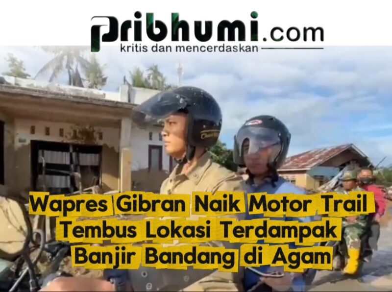 Sumbar, Pribhumi.com — Wakil Presiden Gibran Rakabuming Raka menempuh jalur ekstrem menggunakan motor trail untuk mencapai kawasan terdampak banjir bandang dan longsor di Kabupaten Agam, Sumatera Barat, pada Kamis. Pilihan kendaraan tersebut dilakukan agar ia dapat menjangkau daerah yang hingga kini masih sulit dilewati karena tertutup lumpur dan akses yang menyempit.
